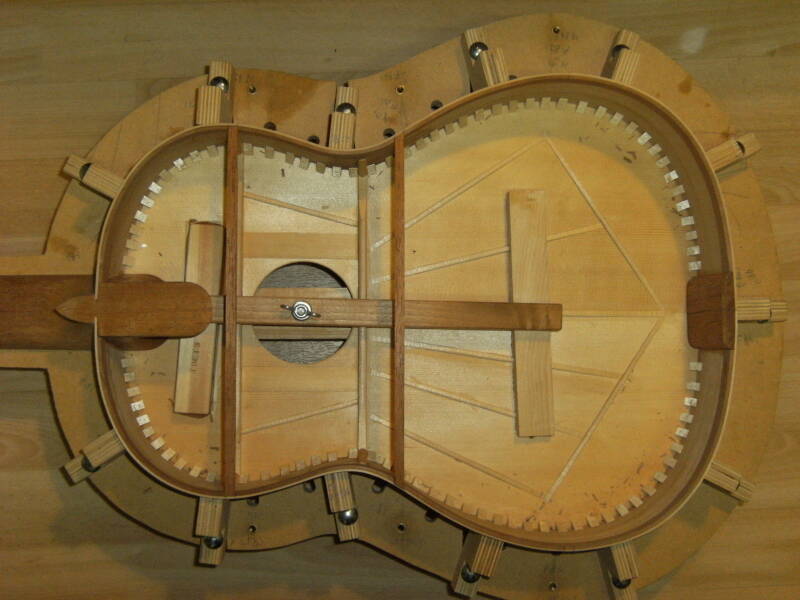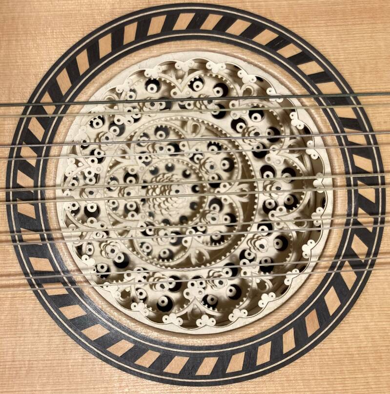 Na blinde luisterproeven voer ik mijn Spaanse gitaren standaard uit met een asymmetrische bovenbladdikte en een waaierpatroon dat bekend is van gitaren van bouwers als Enrique Garcia en Francisco Simplicio. Deze constructie draagt bij aan ronde warme bassen en heldere hoge tonen.
